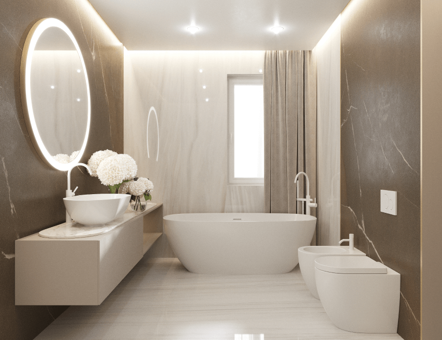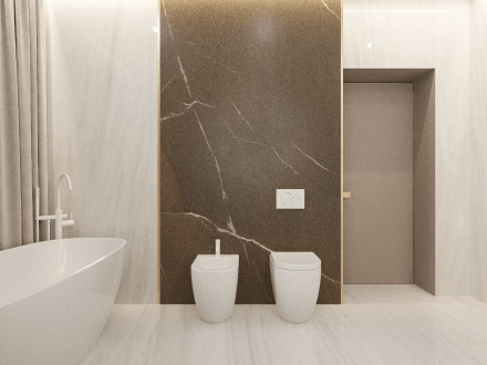 Також у гостьовій спальні розташували полиці для сувенірів, які привезли з численних подорожей. У невеликому санвузлі вдалося вмістити вподобану господині окрему ванну, душову кабіну, унітаз, біде і умивальник з великою стільницею.