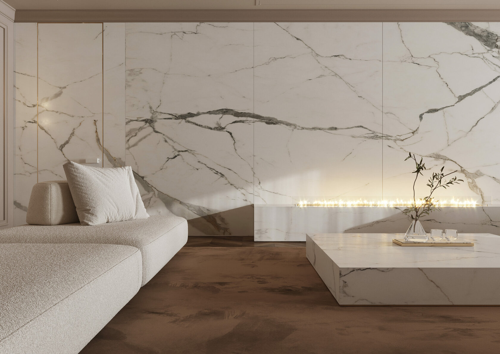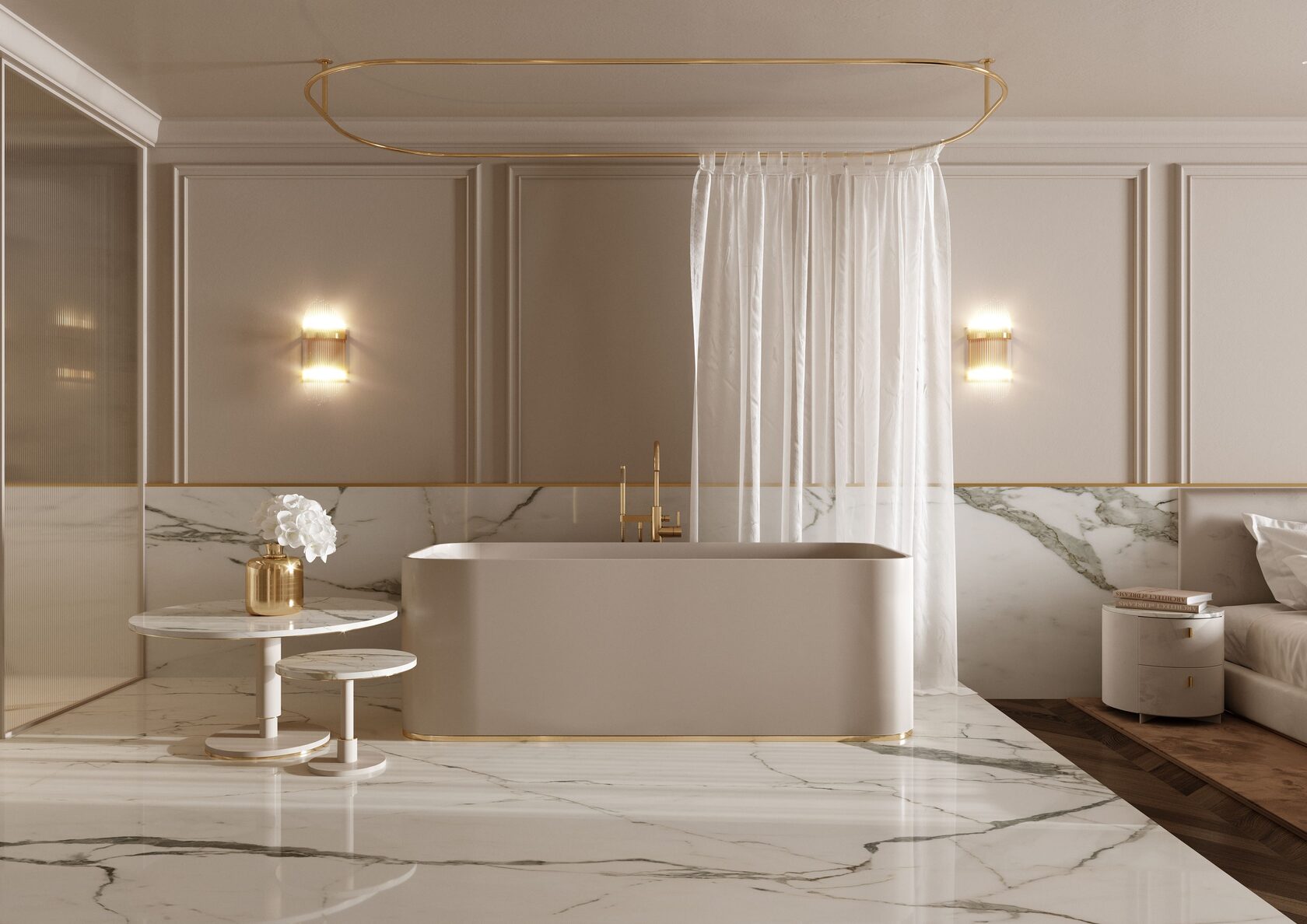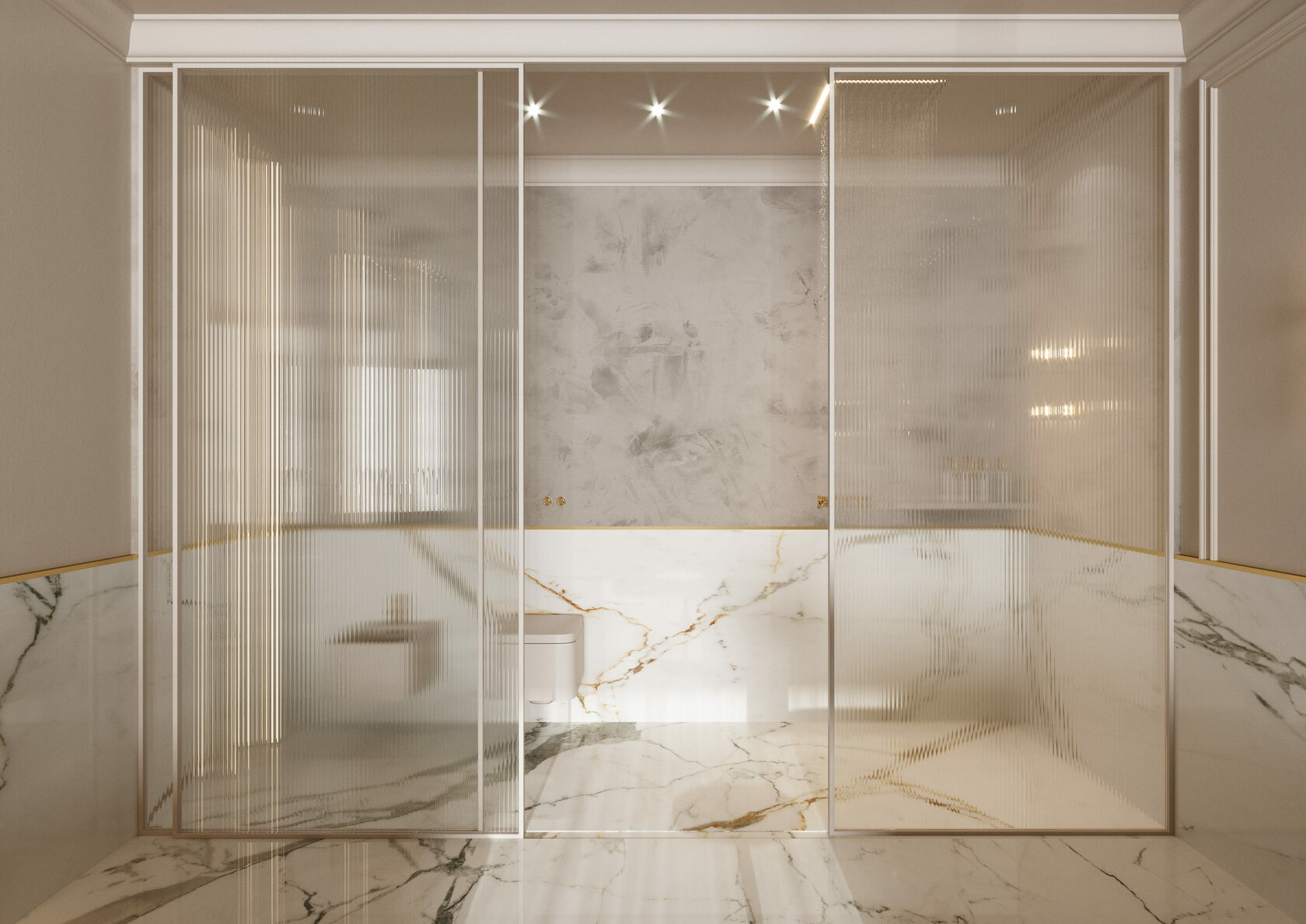 По желанию клиента проект выполнен в светло бежевых тонах и дополнили интерьер отделкой из натурального камня, который подчеркивает лаконичный стиль.